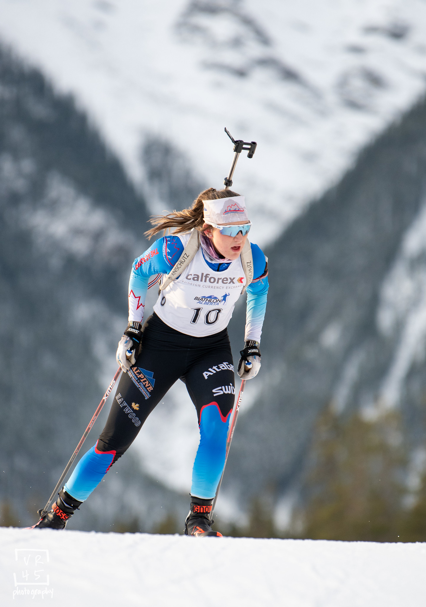She’s got speed, the basic crucial asset in biathlon, and it’s her speed that secured her spot on the World Cup Team. At the Trials in Canmore, she was second in “ski time” in the Sprint, 12 s behind Emma Lunder, and 3rd in the Short Individual, 1 min 18 s behind Emma with Nadia Moser in between.
